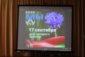 Также был организован просмотр видеоролика «17 сентября — День народного единства», закрепили свои знания, поиграв в викторину «Сила в единстве» и разукрасили государственные символы Республики Беларусь. В заключении мероприятия прошли музыкальные конкурсы.